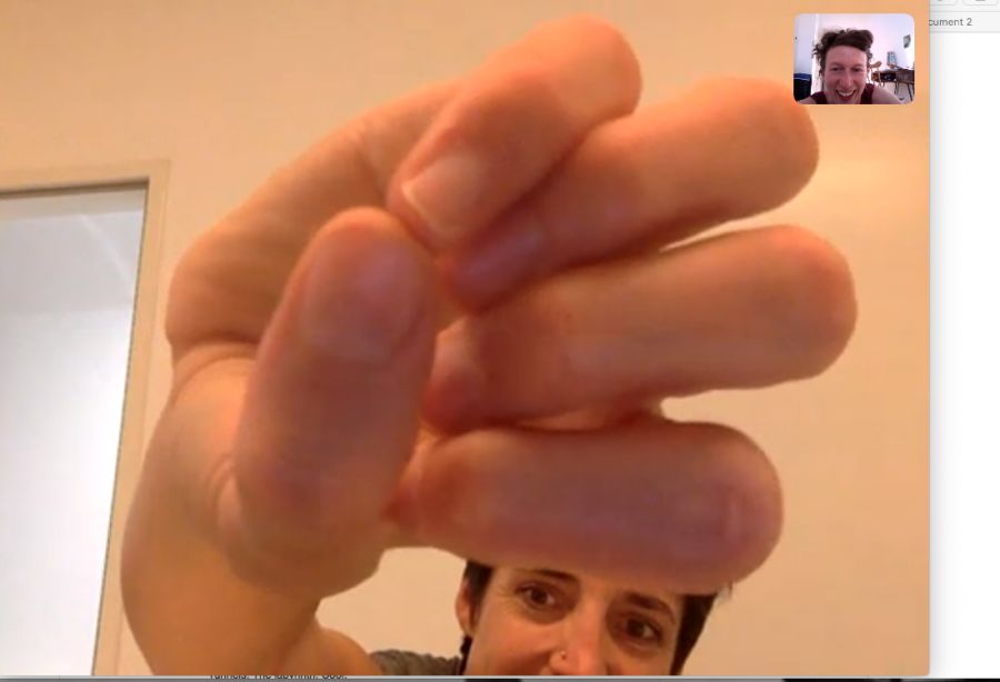 Although the artistic research project Imagined Choreographies didn’t emerge from the current situation we are experiencing globally with the COVID-19 pandemic, we cannot help but see a potential link. The situation we (Ilana and Sabrina) had put ourselves in voluntarily back in July 2018 out of an artistic choice, has now become a reality for people all over the world. The initial question of how to encounter a body that is not here becomes relevant to many of us in one way or another.