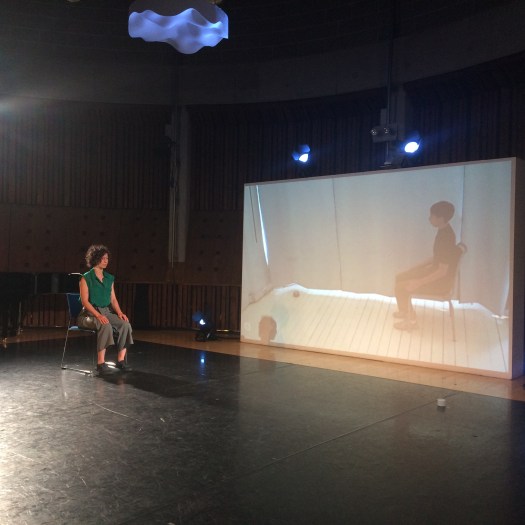 The overarching structure of the work is of a dancer projected live within the space of the other dancer who is performing in front of an audience. Both dancers follow the same movement score and design the same physical space by using tape as a way to mark the virtual space of the projected dancer. The premise of the duet is to explore ways of how to kinesthetically encounter, connect and empathize with an absent body which ultimately is imagined through the physicality of the other.